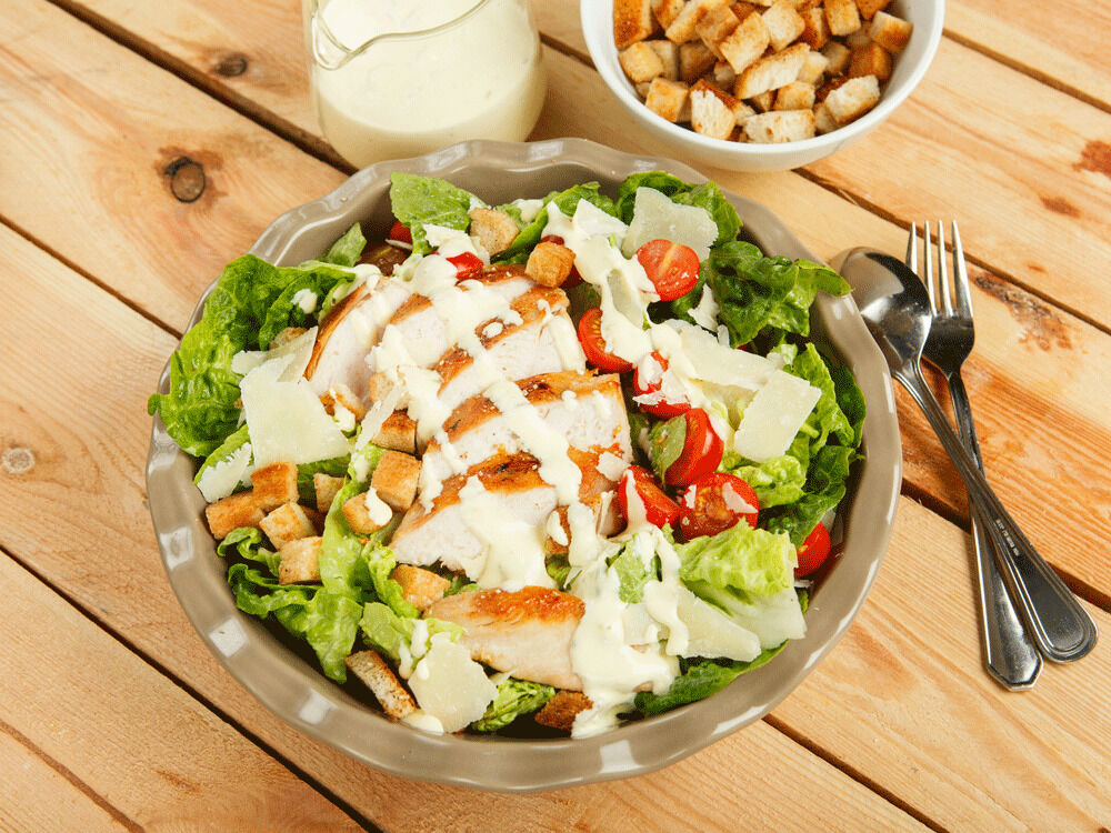 Caesar Salad Mit Knusprigen Hahnchen Und Parmesan Puppenzimmer Com