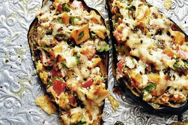 Aubergine Mit Susskartoffelfullung Rezept Kuchengotter