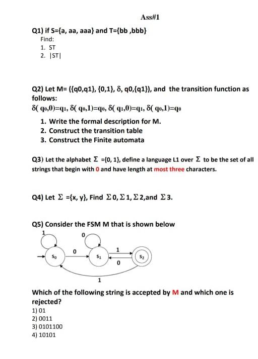 Solved Ass 1 Q1 If S A Aa Aaa And T Bb Bbb Find 1 Chegg Com